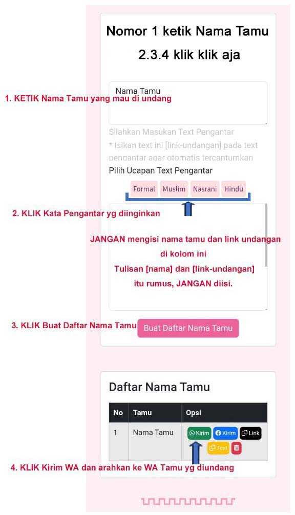 *Jangan gunakan tanda baca Garis Miring (/) pada nama tamu*